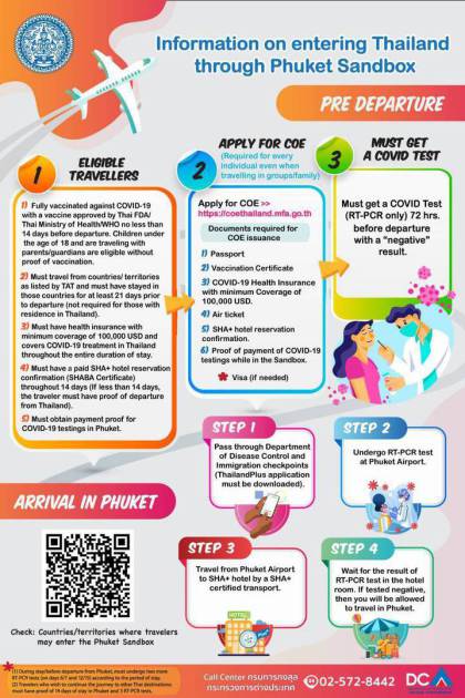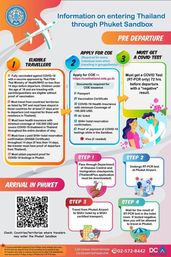 - Einreisende müssen sich mindestens 14 Nächte in Phuket aufhalten, bevor sie in andere Teile Thailands reisen dürfen. Eine frühere Abreise aus Phuket ist nur möglich, wenn die Abreise in ein anderes